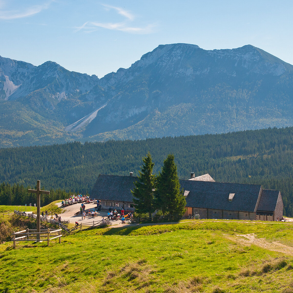 Sennerinnen verwöhnen mit bayerischen Schmankerln. Urige Räumlichkeiten und der großzügige Platz vor der Alm bieten sich für kleine und größere Feierlichkeiten an.